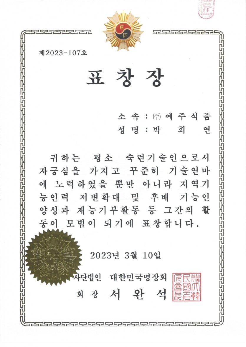 제 2023-107호 (사) 대한민국명장회 표창 페이지 정보 작성자최고관리자 댓글 0건 조회 2,987회 작성일 23-07-05 11:42 본문 <br/>ㄹ 목록 이전글제 0115-2023-19670호 여성기업 확인서 23.07.14 다음글제 2023-013 (사)대전세종충남여성벤처협회 이사 임명장 23.07.05 댓글목록 댓글목록 등록된 댓글이 없습니다.